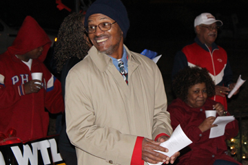 C.C. the emcee at Caroling in the Park
