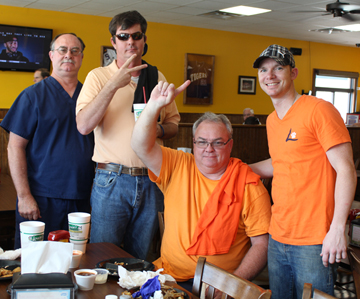 2014 Louie's Wing Eating Contest participants with owner/manager Ryan Willis (far right); Randy Herring, Ben Taylor and Trey Taylor.