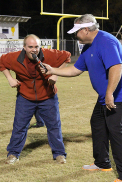 Graham with the AHSAA's Ron Ingram during River Region Sports Prep Media Day in 2020 at Garrett Coliseum in Montgomery