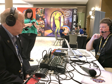 Brett and Gary Buchanan with Michael Butler and Graham Dunn on Radio Row at Media Days