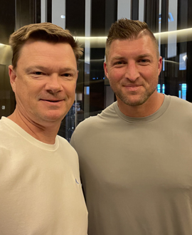 Michael with Tim Tebow at 2022 SEC Media Days in Atlanta